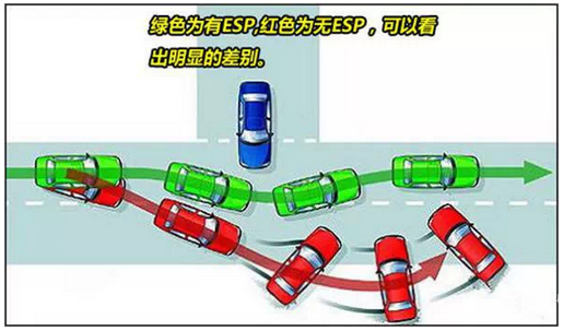 車身穩定控制系統簡稱ESP,在轉彎和濕滑路面上它可以有效防止車輛失控而帶來的嚴重后果,彌補轉向不足。