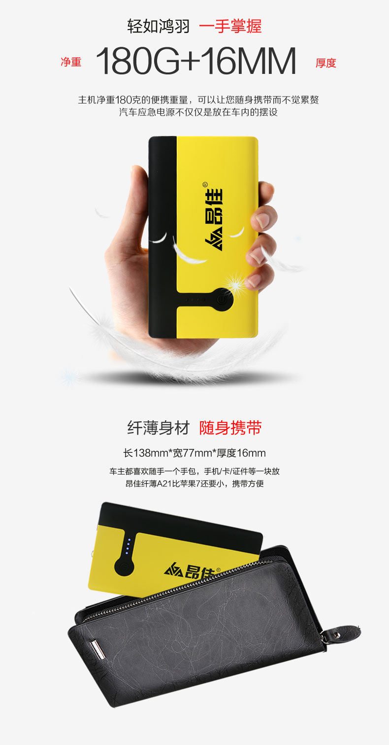 要是經(jīng)常開車的朋友,一定會(huì)遇到轎車沒電而無法發(fā)動(dòng)的情況,那種傻傻等待救援的無奈,肯定有所體會(huì);如果你遇到過由于大冬季電瓶因氣溫較低無法發(fā)動(dòng)發(fā)動(dòng)機(jī),自己卻毫無招架之力的無助;如果你也碰到過由于夏天溫度過高線路老化導(dǎo)致車輛自燃,而上班快要遲到的焦灼·····你會(huì)發(fā)現(xiàn)擁有一款汽車應(yīng)急啟動(dòng)電源的重要性