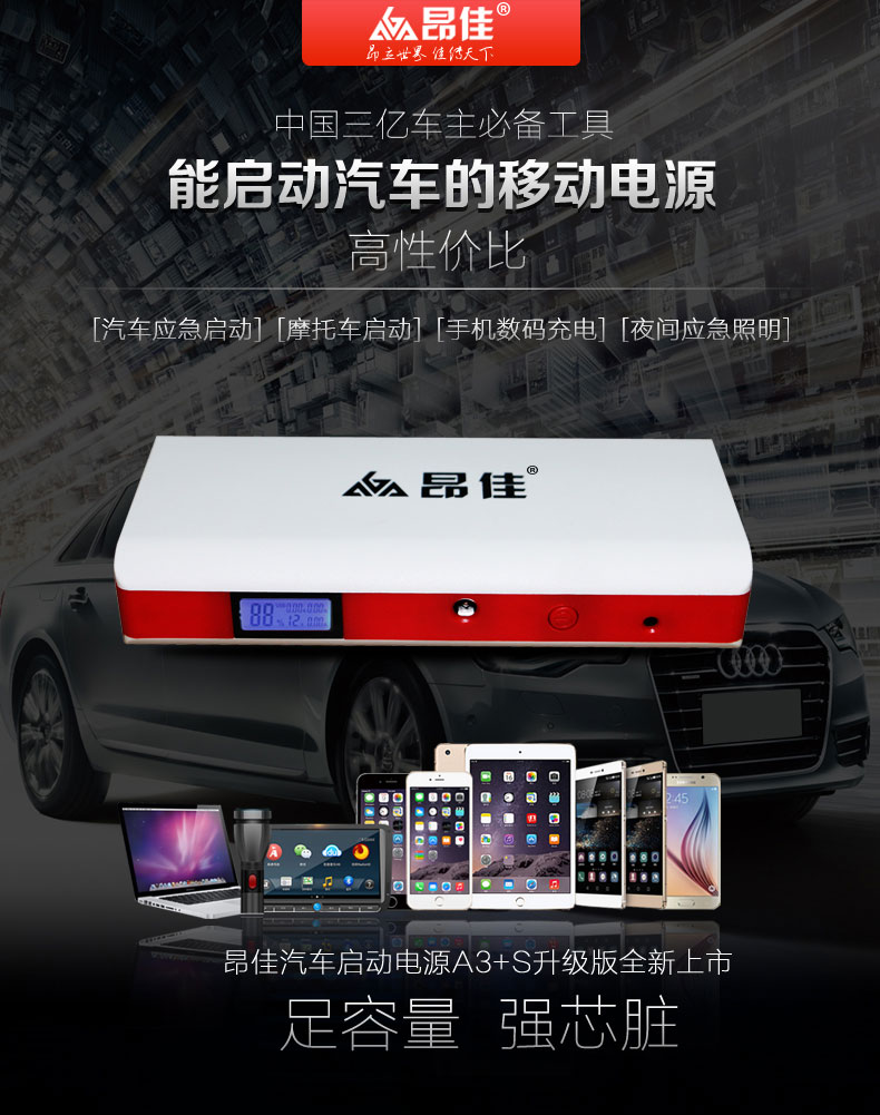 汽車是現代文明的產物,在能夠帶給大家方便的同時,它也會因為各種原因導致無法正常啟動,比如天氣寒冷,電量不足熄火,像這樣的情況會給我們造成困擾,這個時候我們就能夠用到一款應急神器就是汽車應急啟動電源,汽車應急電源作為一個應急設備,其性能的好壞便尤為的重要,下面就給大家推薦一款汽車應急搭電寶,如圖